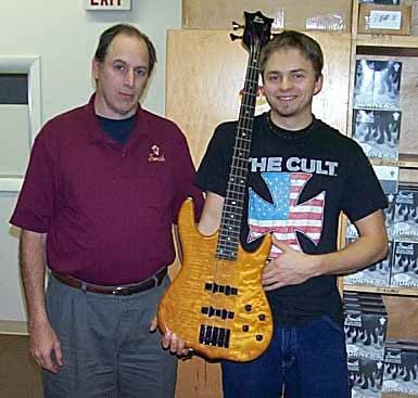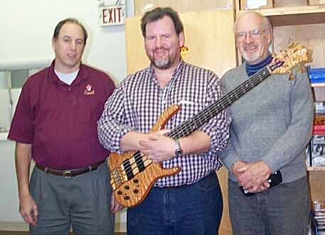 (let to right) Ken Smith, Gary Williams, & Paul Williams from Peates Music House in Utica New York Bass Pictured: 99' BSR5EG Quilted Maple with Mahogany Core